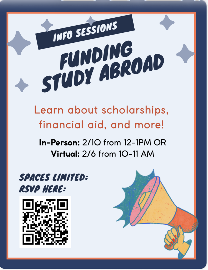 Funding Study Abroad: Information Session: February 6th, 10-11am (Zoom); February 10th, 12-1pm, Alderson Hall Room #340, Register here